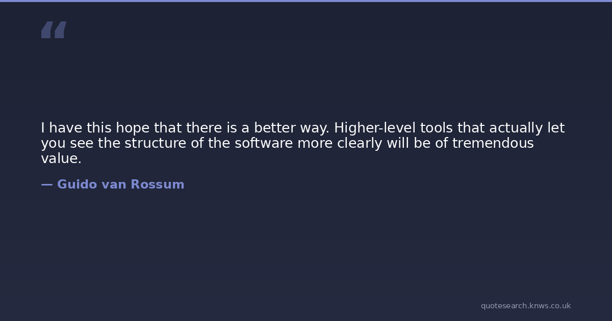 I have this hope that there is a better way. Higher-level tools that actually let you see the structure of the software more clearly will be of tremendous value.