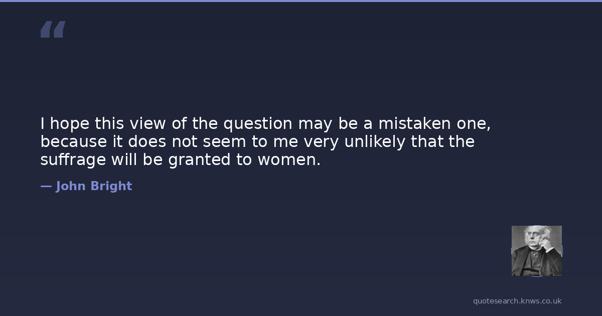 I hope this view of the question may be a mistaken one, because it does not seem to me very unlikely that the suffrage will be granted to women.