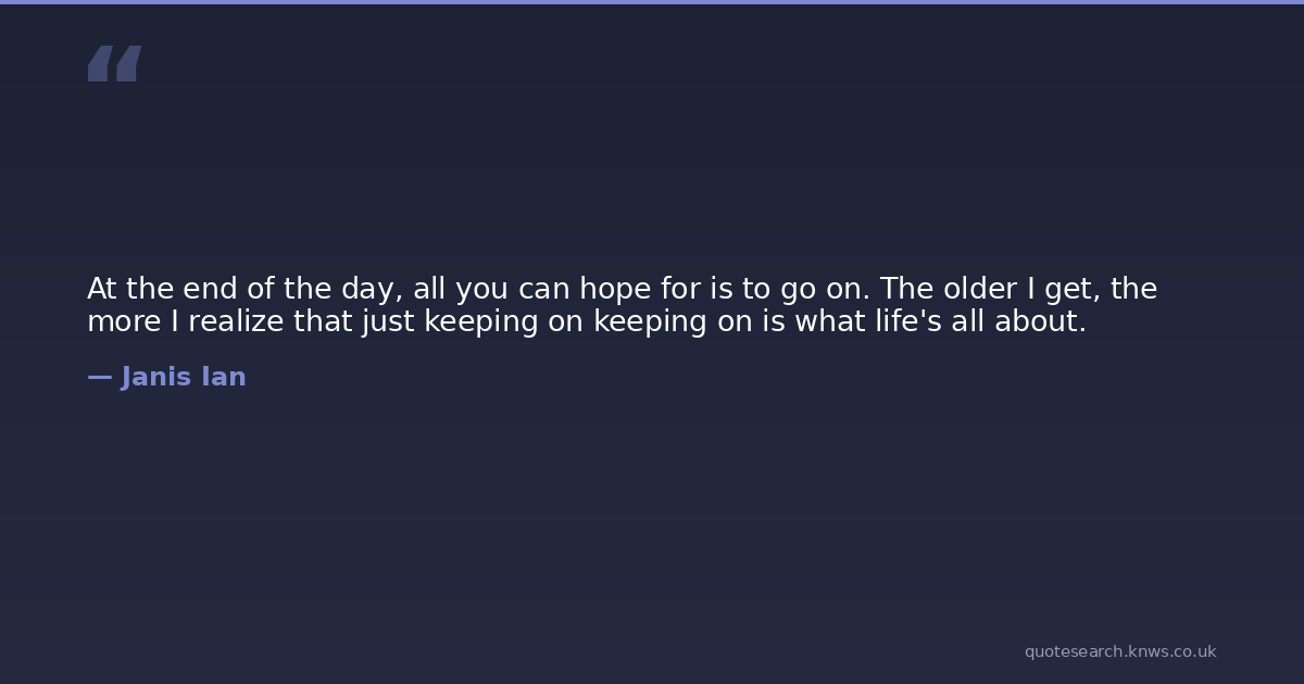 At the end of the day, all you can hope for is to go on. The older I get, the more I realize that just keeping on keeping on is what life's all about.