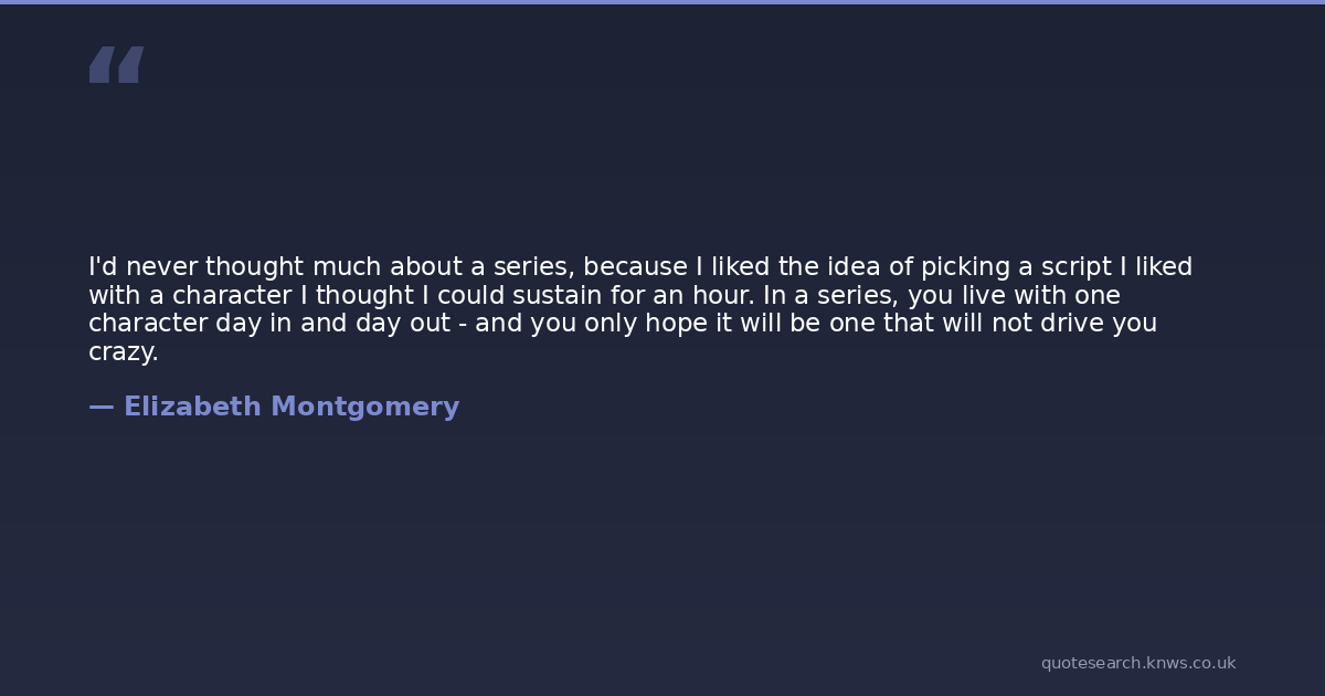 I'd never thought much about a series, because I liked the idea of picking a script I liked with a character I thought I could sustain for an hour. In a series, you live with one character day in and day out - and you only hope it will be one that will not drive you crazy.
