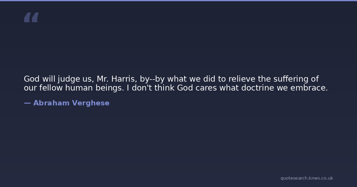 God will judge us, Mr. Harris, by--by what we did to relieve the suffering of our fellow human beings. I don't think God cares what doctrine we embrace.