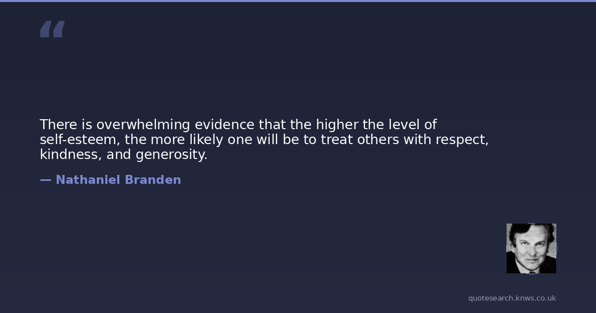 There is overwhelming evidence that the higher the level of self-esteem, the more likely one will be to treat others with respect, kindness, and generosity.