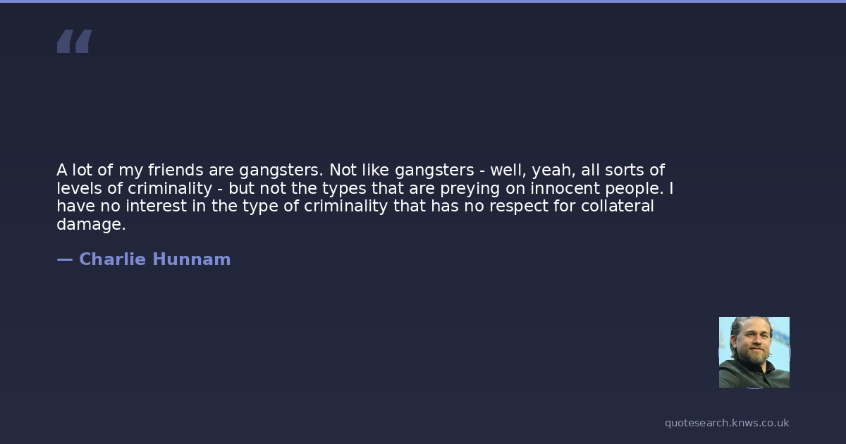 A lot of my friends are gangsters. Not like gangsters - well, yeah, all sorts of levels of criminality - but not the types that are preying on innocent people. I have no interest in the type of criminality that has no respect for collateral damage.