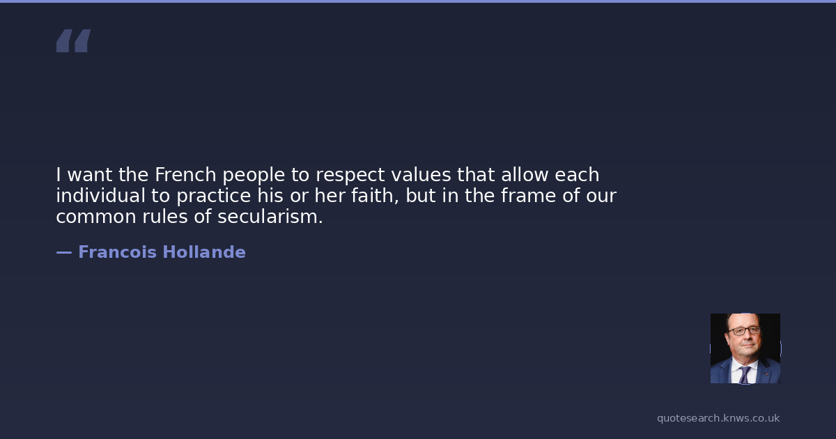 I want the French people to respect values that allow each individual to practice his or her faith, but in the frame of our common rules of secularism.
