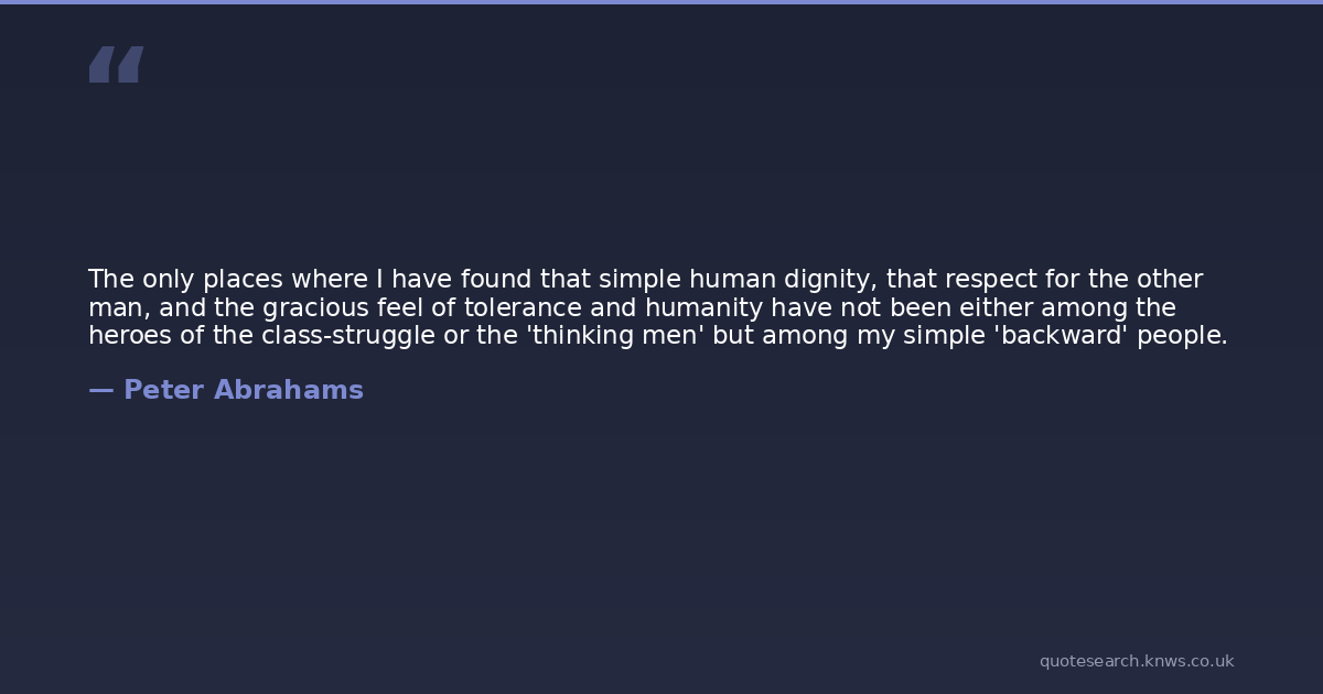 The only places where I have found that simple human dignity, that respect for the other man, and the gracious feel of tolerance and humanity have not been either among the heroes of the class-struggle or the 'thinking men' but among my simple 'backward' people.