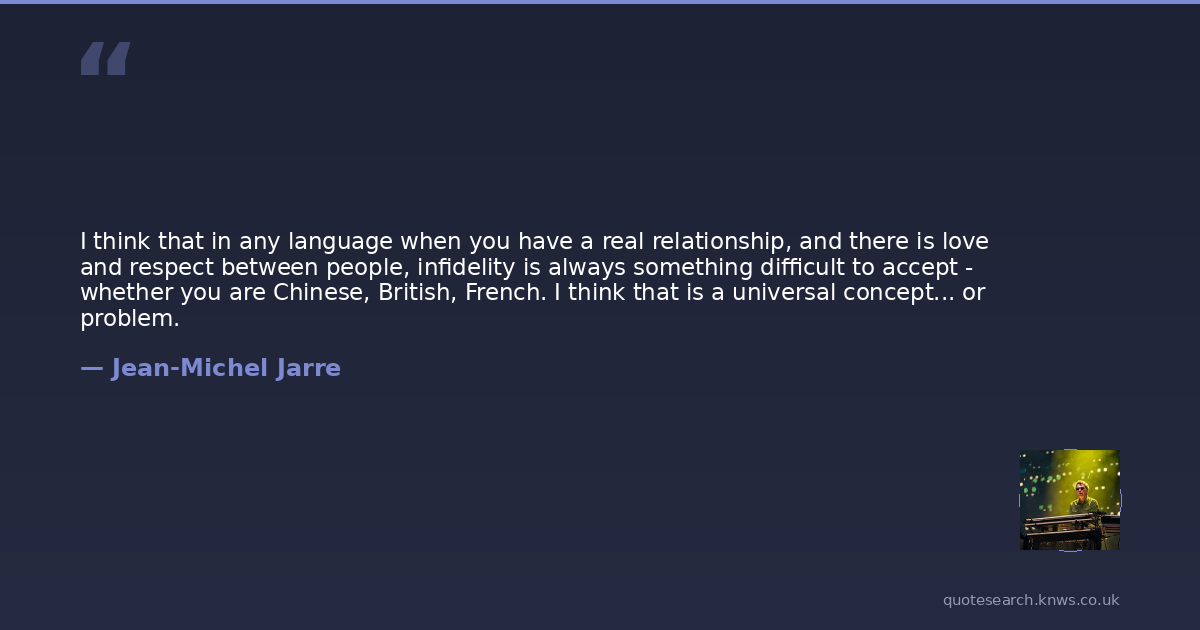 I think that in any language when you have a real relationship, and there is love and respect between people, infidelity is always something difficult to accept - whether you are Chinese, British, French. I think that is a universal concept... or problem.