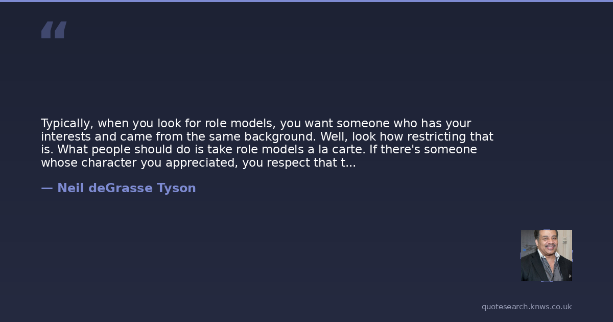 Typically, when you look for role models, you want someone who has your interests and came from the same background. Well, look how restricting that is. What people should do is take role models a la carte. If there's someone whose character you appreciated, you respect that trait.