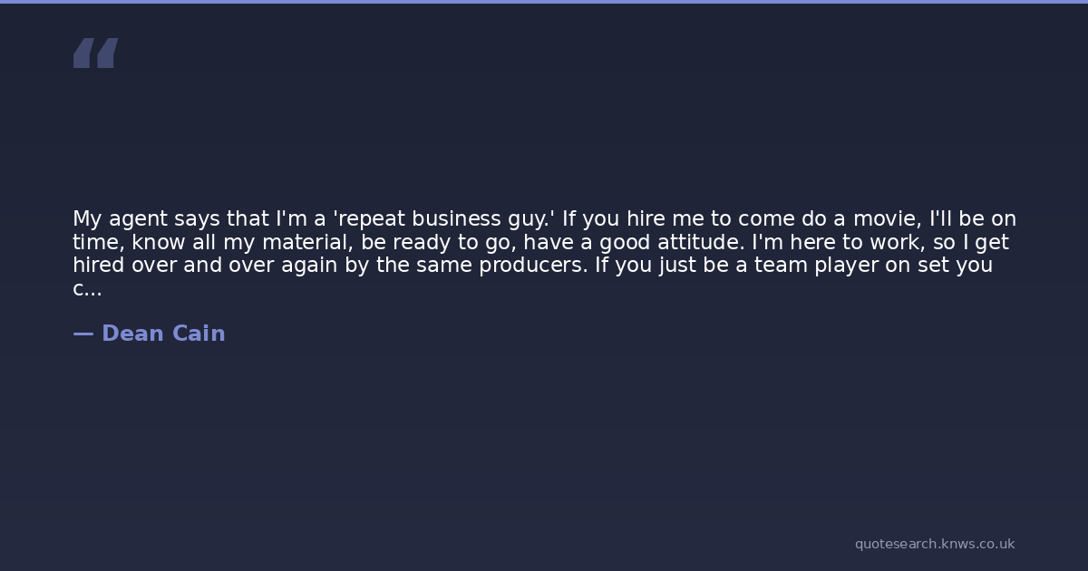 My agent says that I'm a 'repeat business guy.' If you hire me to come do a movie, I'll be on time, know all my material, be ready to go, have a good attitude. I'm here to work, so I get hired over and over again by the same producers. If you just be a team player on set you can work so much more often.