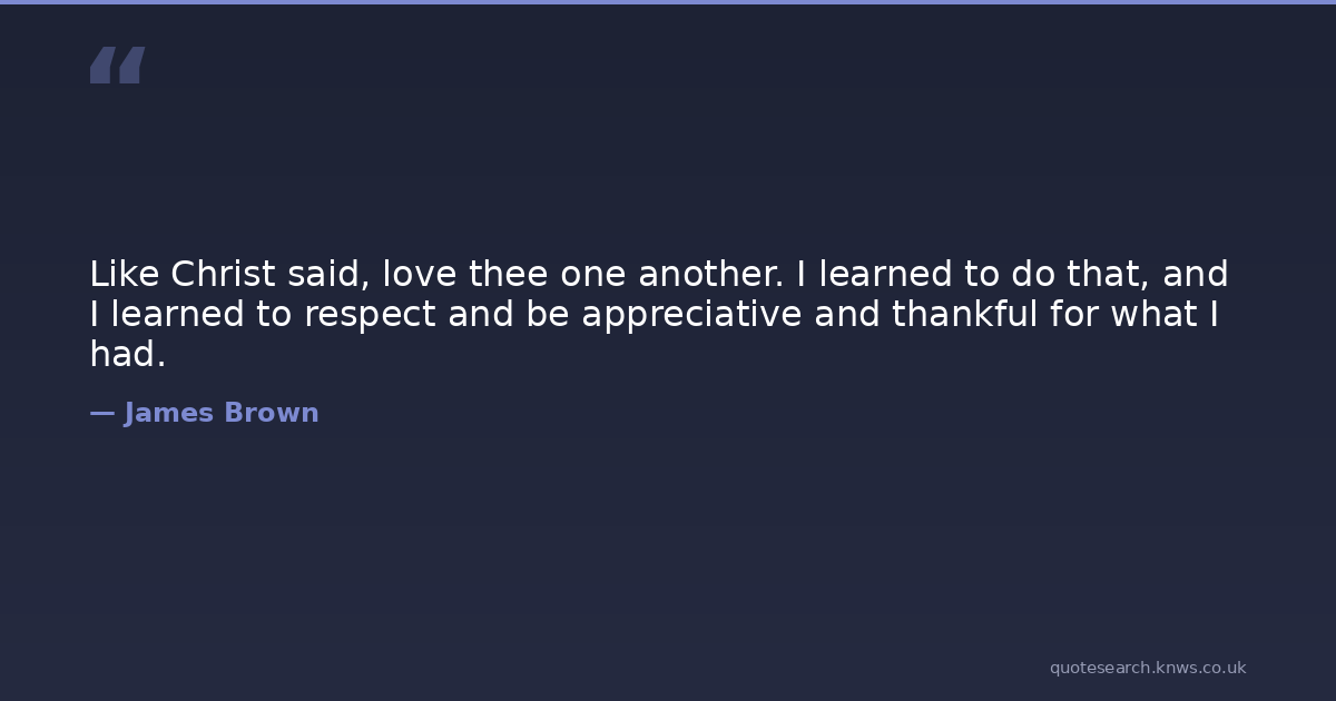 Like Christ said, love thee one another. I learned to do that, and I learned to respect and be appreciative and thankful for what I had.