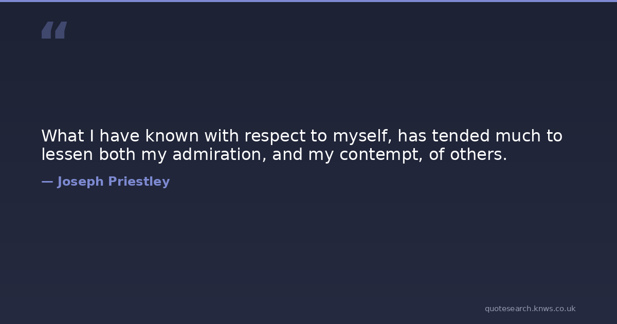 What I have known with respect to myself, has tended much to lessen both my admiration, and my contempt, of others. Myself Admiration Others Download Image Share on X Share on Facebook Copy Link