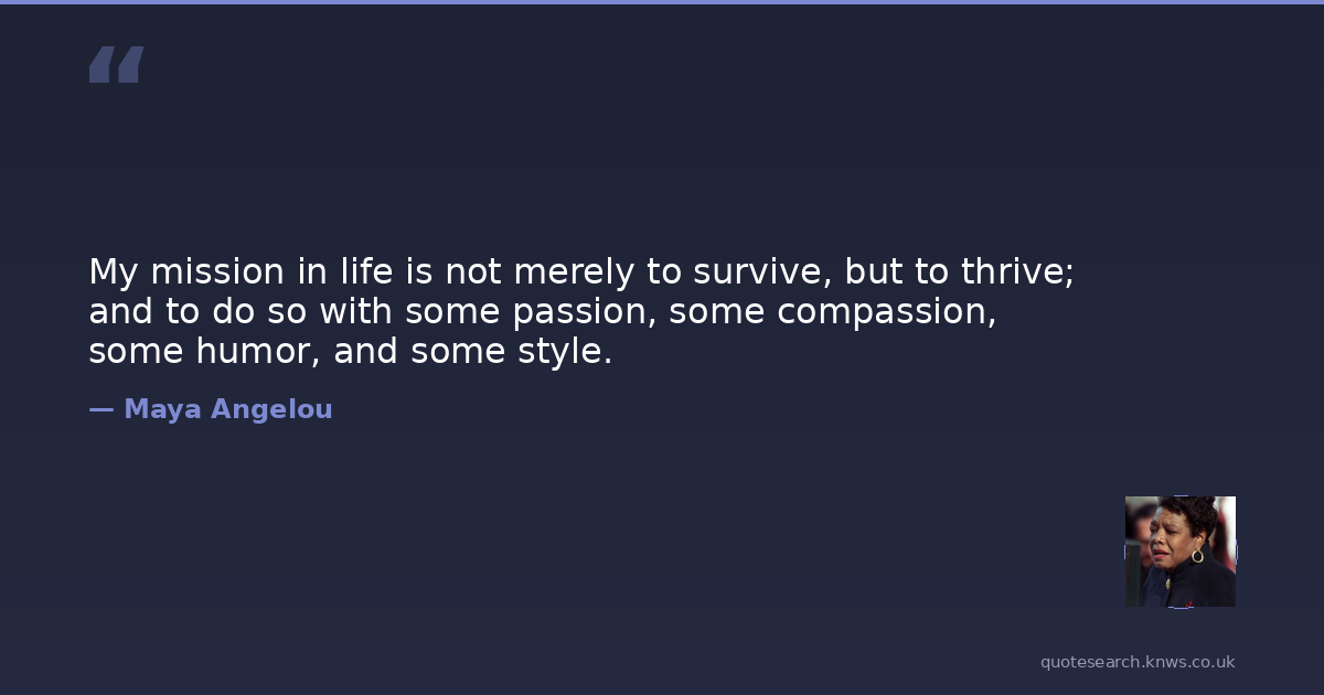 My mission in life is not merely to survive, but to thrive; and to do so with some passion, some compassion, some humor, and some style.