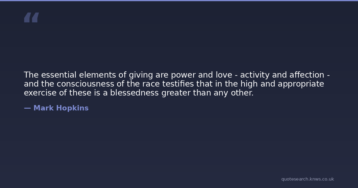 The essential elements of giving are power and love - activity and affection - and the consciousness of the race testifies that in the high and appropriate exercise of these is a blessedness greater than any other.