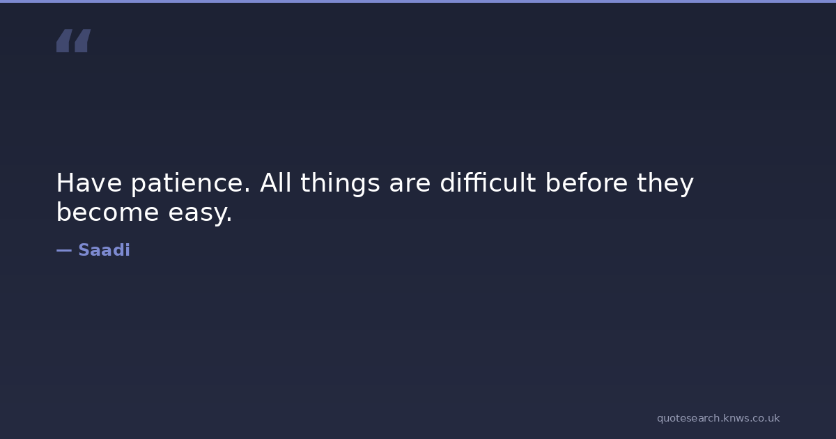 Have patience. All things are difficult before they become easy. god iranian-poet life love religion spiritual Download Image Share on X Share on Facebook Copy Link