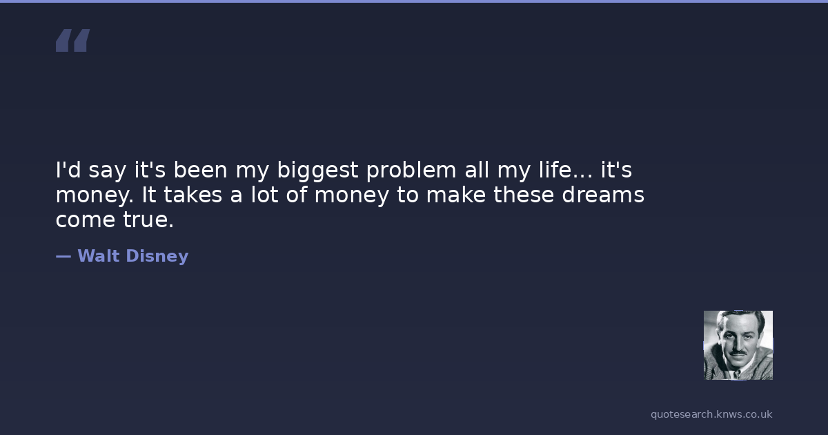 I'd say it's been my biggest problem all my life... it's money. It takes a lot of money to make these dreams come true.