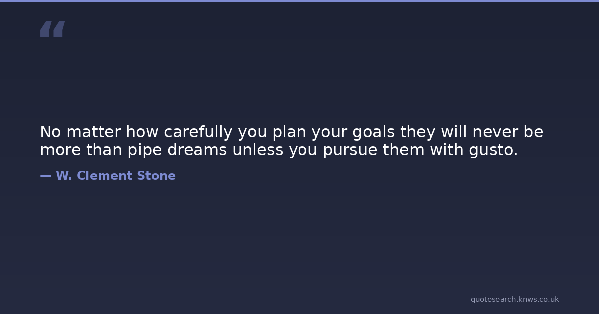 No matter how carefully you plan your goals they will never be more than pipe dreams unless you pursue them with gusto.