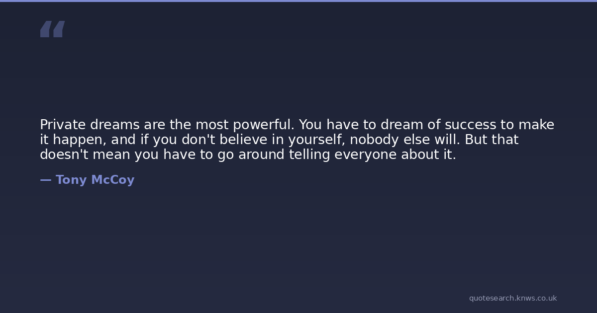 Private dreams are the most powerful. You have to dream of success to make it happen, and if you don't believe in yourself, nobody else will. But that doesn't mean you have to go around telling everyone about it.