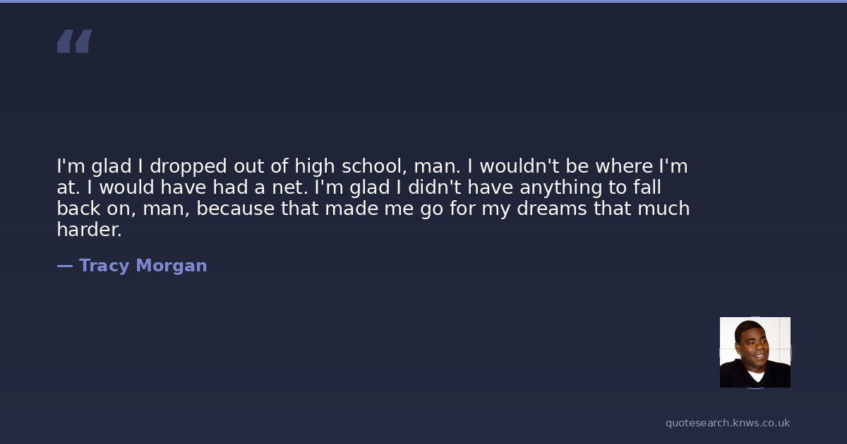 I'm glad I dropped out of high school, man. I wouldn't be where I'm at. I would have had a net. I'm glad I didn't have anything to fall back on, man, because that made me go for my dreams that much harder.