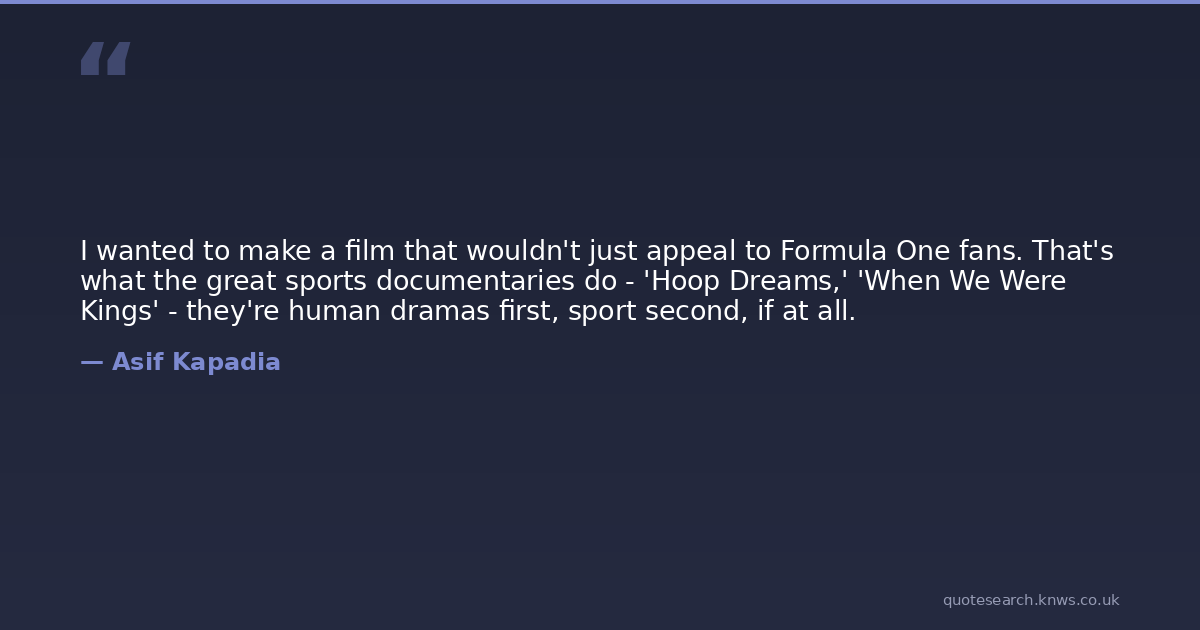 I wanted to make a film that wouldn't just appeal to Formula One fans. That's what the great sports documentaries do - 'Hoop Dreams,' 'When We Were Kings' - they're human dramas first, sport second, if at all.