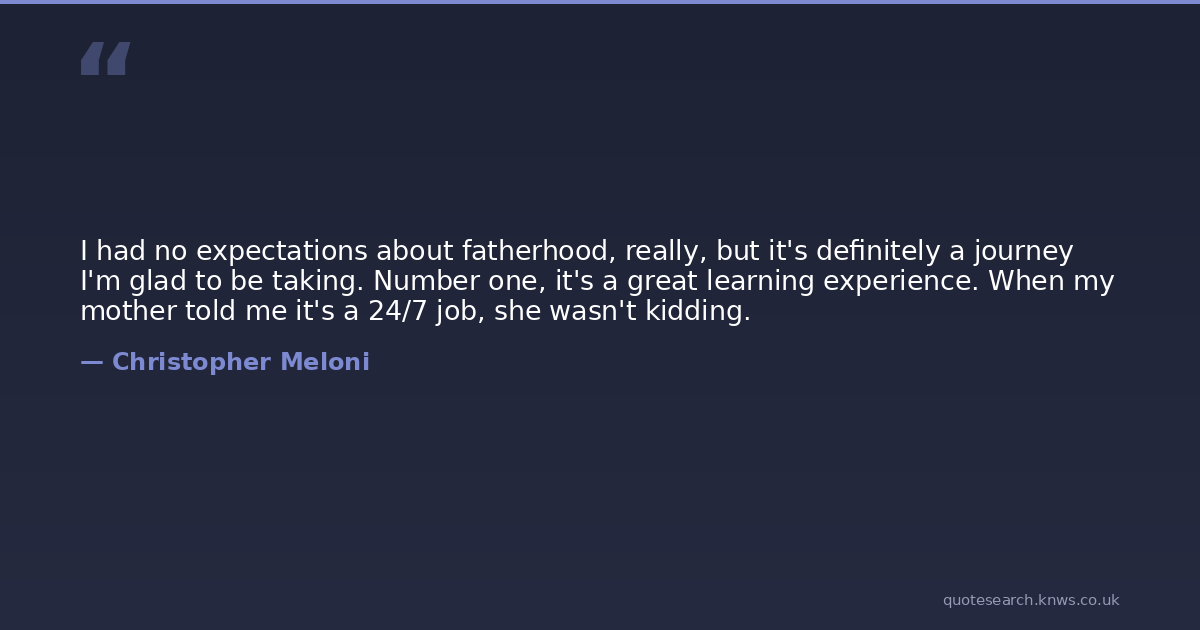 I had no expectations about fatherhood, really, but it's definitely a journey I'm glad to be taking. Number one, it's a great learning experience. When my mother told me it's a 24/7 job, she wasn't kidding.