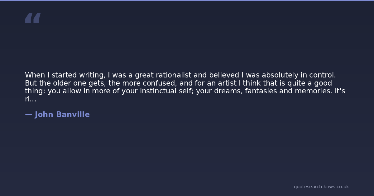 When I started writing, I was a great rationalist and believed I was absolutely in control. But the older one gets, the more confused, and for an artist I think that is quite a good thing: you allow in more of your instinctual self; your dreams, fantasies and memories. It's richer, in a way.