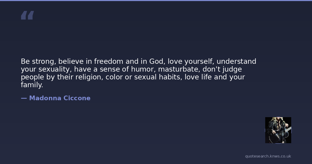 Be strong, believe in freedom and in God, love yourself, understand your sexuality, have a sense of humor, masturbate, don't judge people by their religion, color or sexual habits, love life and your family.