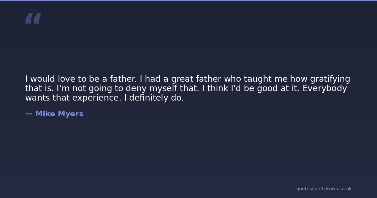 I would love to be a father. I had a great father who taught me how gratifying that is. I'm not going to deny myself that. I think I'd be good at it. Everybody wants that experience. I definitely do.