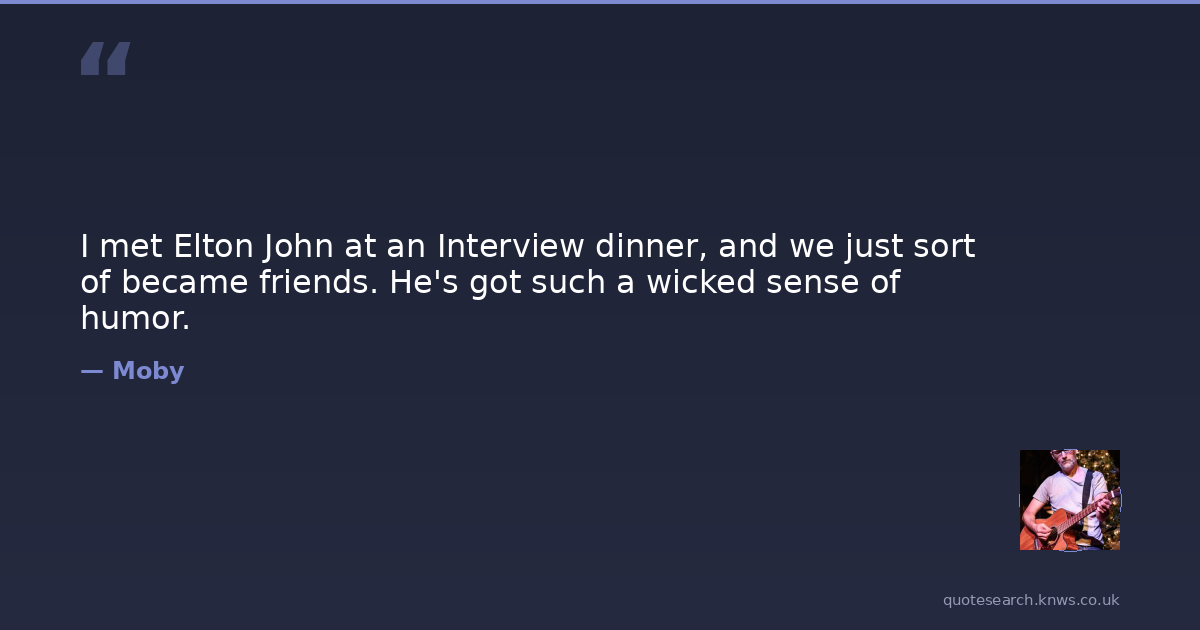 I met Elton John at an Interview dinner, and we just sort of became friends. He's got such a wicked sense of humor.