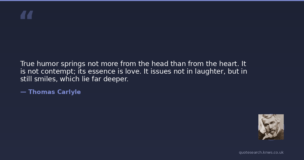 True humor springs not more from the head than from the heart. It is not contempt; its essence is love. It issues not in laughter, but in still smiles, which lie far deeper.