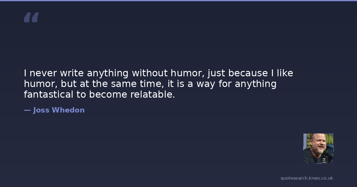 I never write anything without humor, just because I like humor, but at the same time, it is a way for anything fantastical to become relatable.
