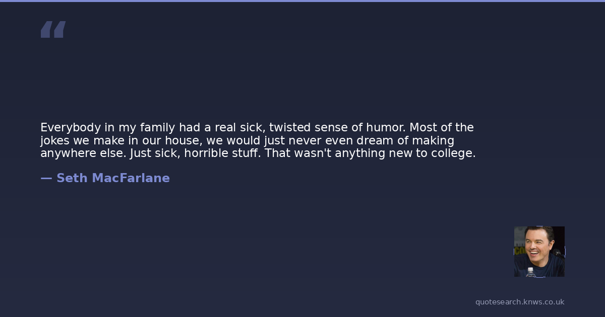 Everybody in my family had a real sick, twisted sense of humor. Most of the jokes we make in our house, we would just never even dream of making anywhere else. Just sick, horrible stuff. That wasn't anything new to college.