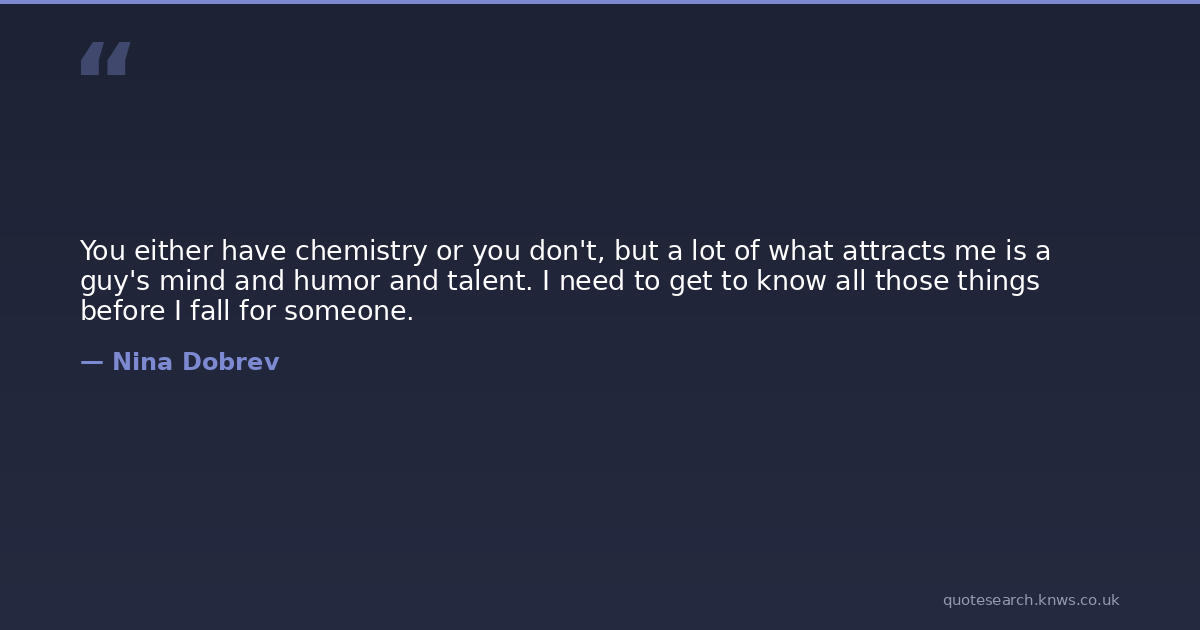 You either have chemistry or you don't, but a lot of what attracts me is a guy's mind and humor and talent. I need to get to know all those things before I fall for someone.