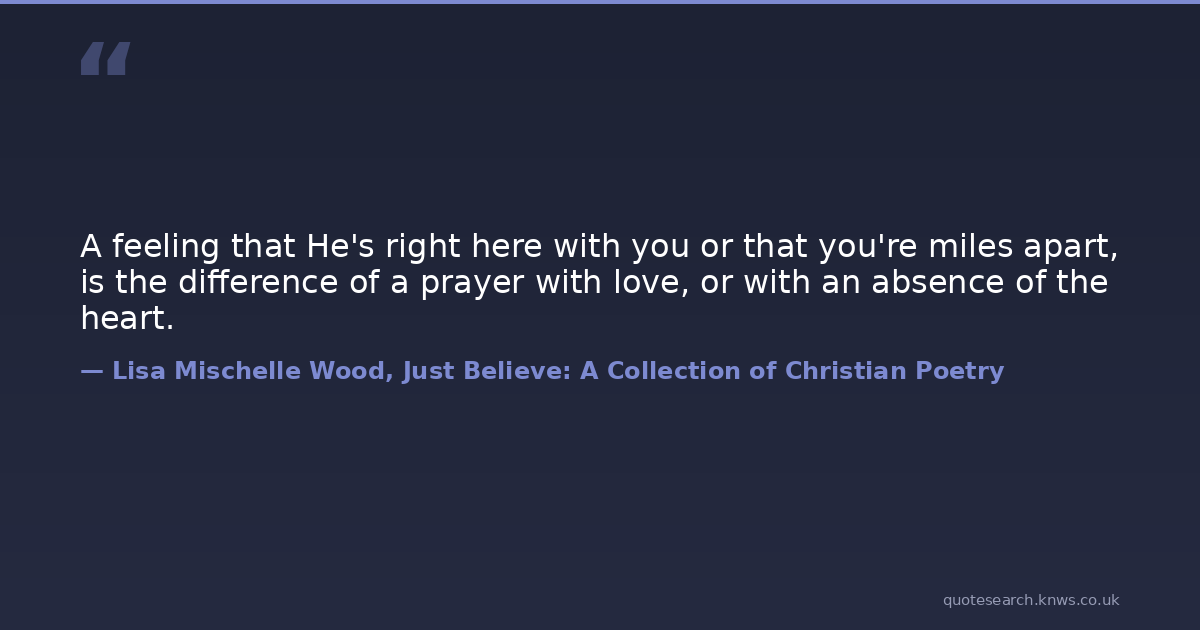 A feeling that He's right here with you or that you're miles apart, is the difference of a prayer with love, or with an absence of the heart.