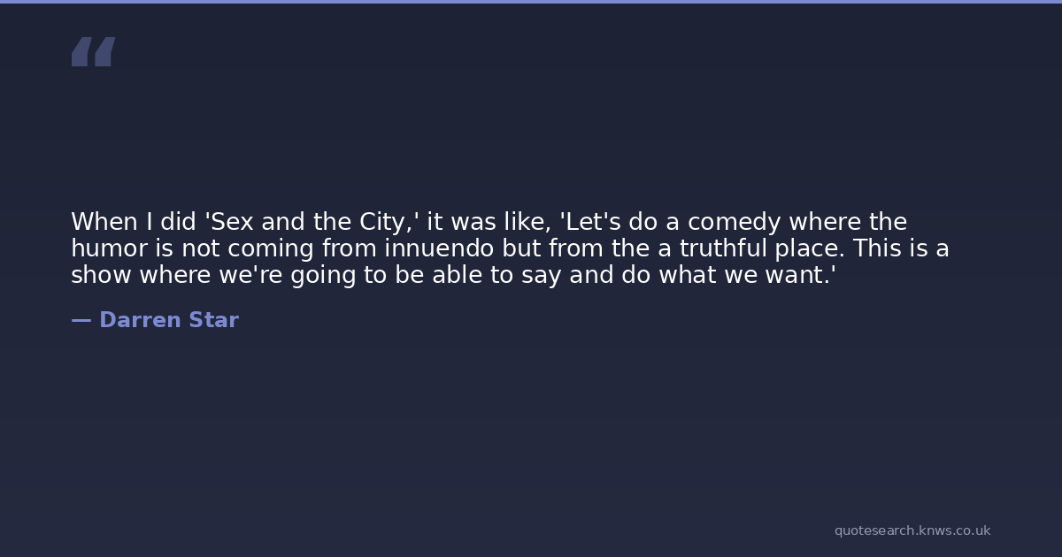 When I did 'Sex and the City,' it was like, 'Let's do a comedy where the humor is not coming from innuendo but from the a truthful place. This is a show where we're going to be able to say and do what we want.'
