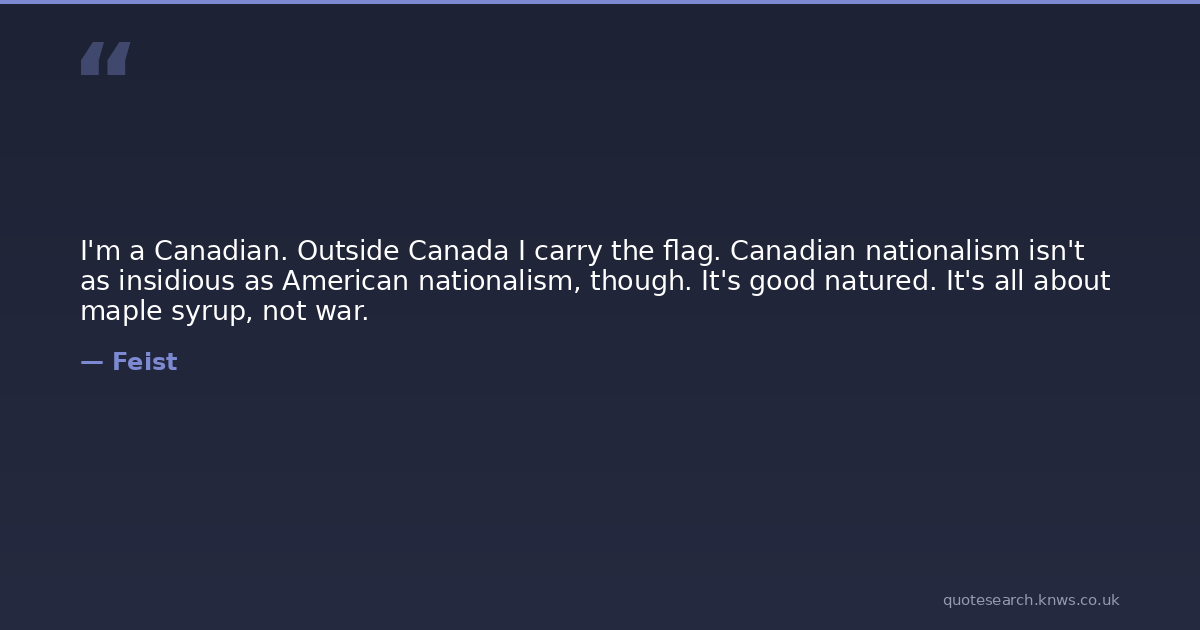 I'm a Canadian. Outside Canada I carry the flag. Canadian nationalism isn't as insidious as American nationalism, though. It's good natured. It's all about maple syrup, not war.