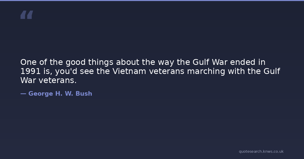 One of the good things about the way the Gulf War ended in 1991 is, you'd see the Vietnam veterans marching with the Gulf War veterans.