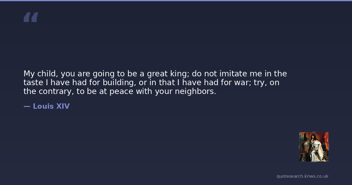 My child, you are going to be a great king; do not imitate me in the taste I have had for building, or in that I have had for war; try, on the contrary, to be at peace with your neighbors.