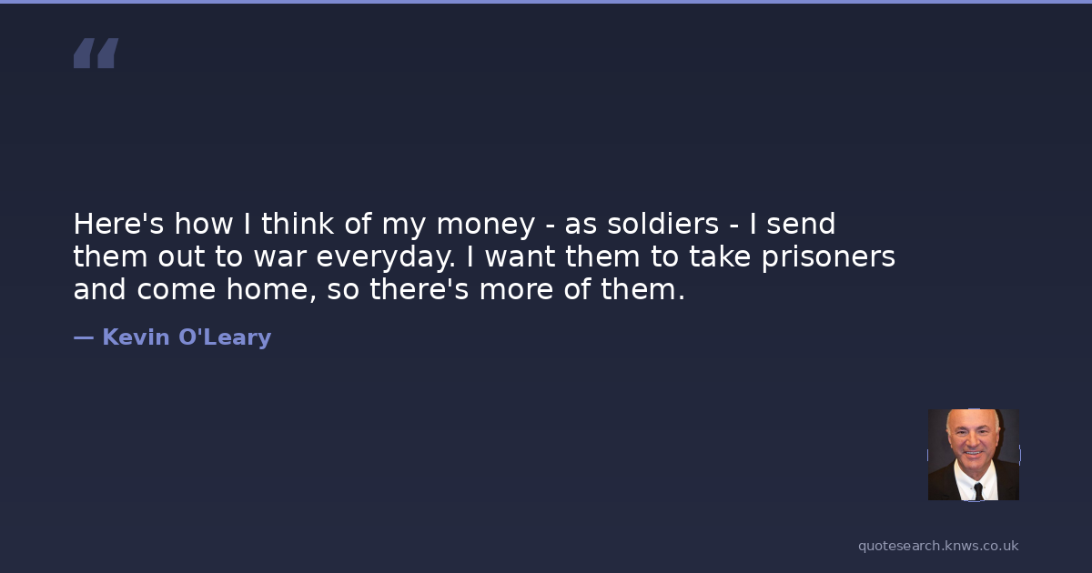 Here's how I think of my money - as soldiers - I send them out to war everyday. I want them to take prisoners and come home, so there's more of them.