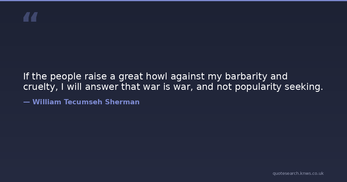 If the people raise a great howl against my barbarity and cruelty, I will answer that war is war, and not popularity seeking.