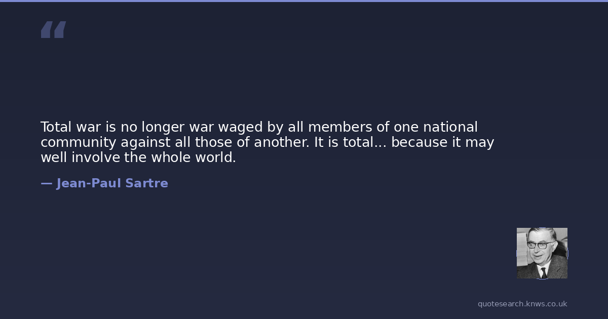 Total war is no longer war waged by all members of one national community against all those of another. It is total... because it may well involve the whole world.