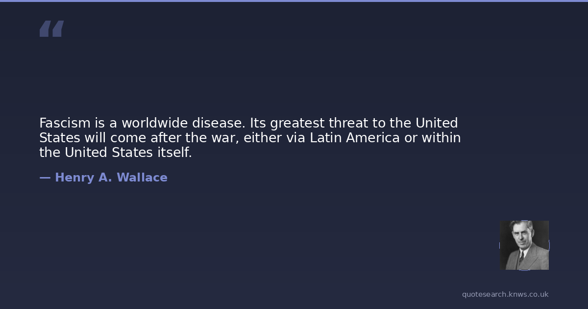 Fascism is a worldwide disease. Its greatest threat to the United States will come after the war, either via Latin America or within the United States itself.