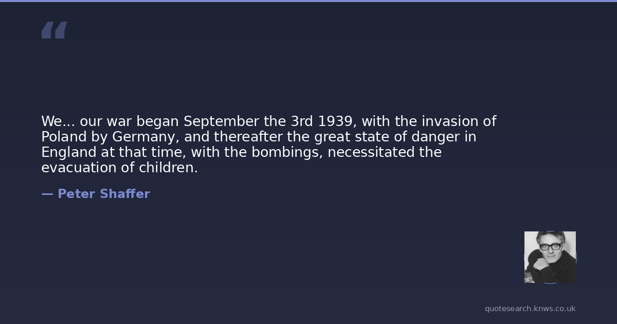 We... our war began September the 3rd 1939, with the invasion of Poland by Germany, and thereafter the great state of danger in England at that time, with the bombings, necessitated the evacuation of children.