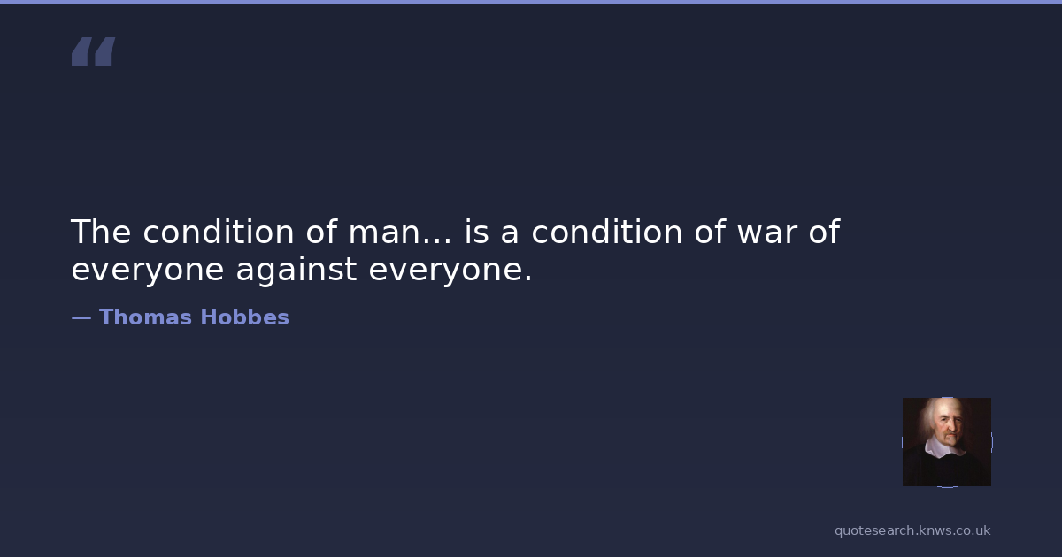 Thomas Hobbes was a 16th-century English philosopher and political theorist. Thomas Hobbes was an English philosopher and political theorist, best known for his 1651 book Leviathan, in which he expounds an influential formulation of social contract theory. He is considered to be one of the founders of modern political philosophy. Read more on Wikipedia →