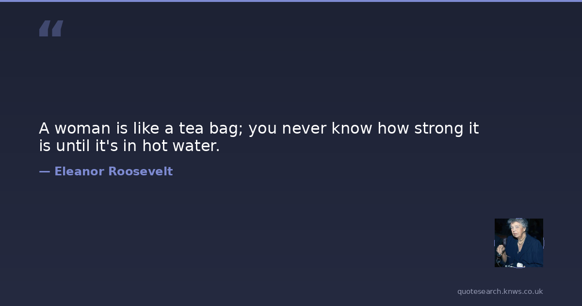 A woman is like a tea bag; you never know how strong it is until it's in hot water.