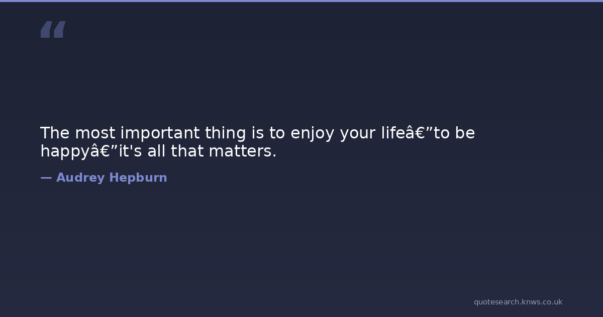 The most important thing is to enjoy your life—to be happy—it's all that matters. happiness life Download Image Share on X Share on Facebook Copy Link