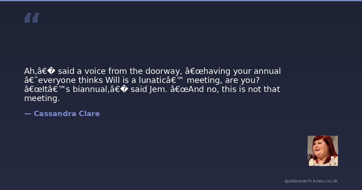 Ah,� said a voice from the doorway, “having your annual ‘everyone thinks Will is a lunatic’ meeting, are you? “It’s biannual,� said Jem. “And no, this is not that meeting.