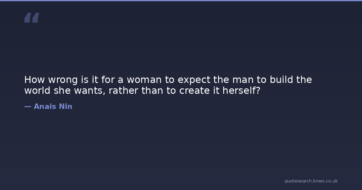 How wrong is it for a woman to expect the man to build the world she wants, rather than to create it herself?