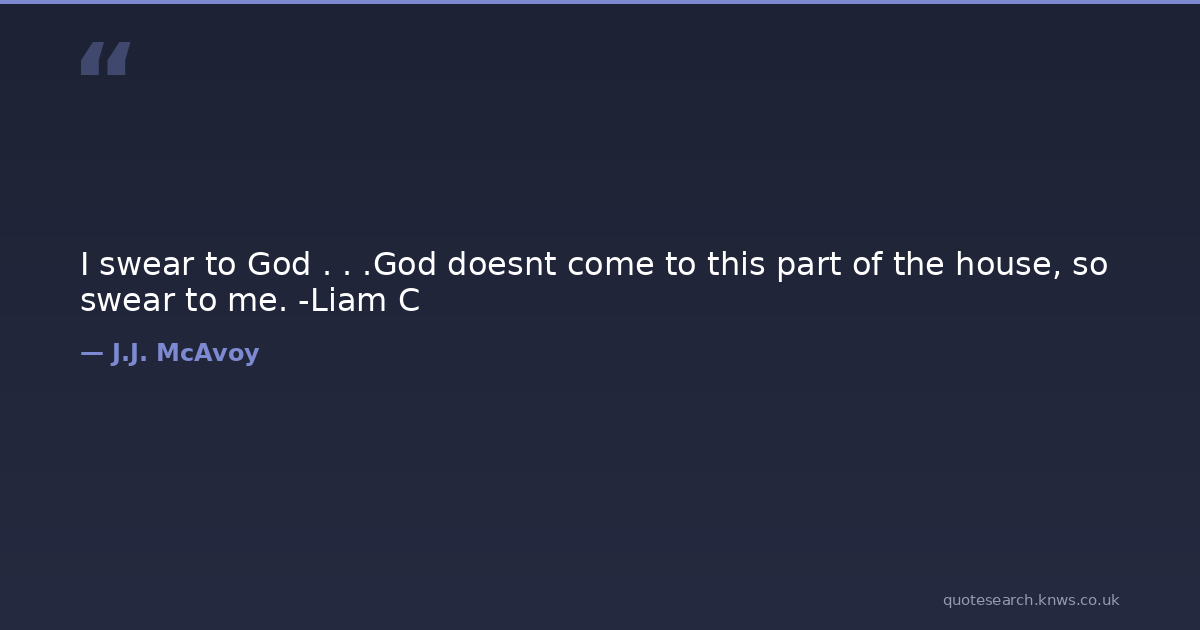 I swear to God . . .God doesnt come to this part of the house, so swear to me. -Liam C