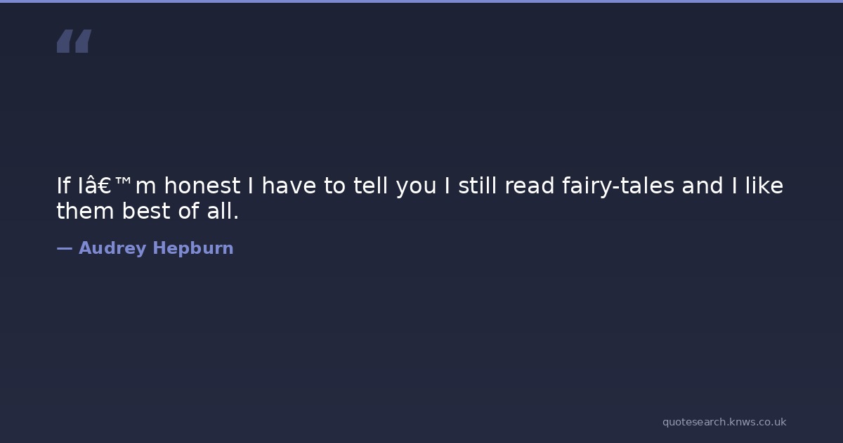 If I’m honest I have to tell you I still read fairy-tales and I like them best of all. fairy-tales Download Image Share on X Share on Facebook Copy Link
