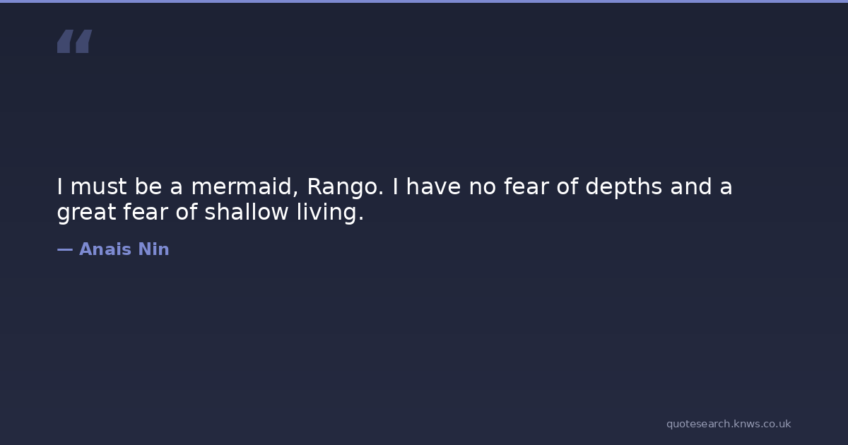 I must be a mermaid, Rango. I have no fear of depths and a great fear of shallow living.