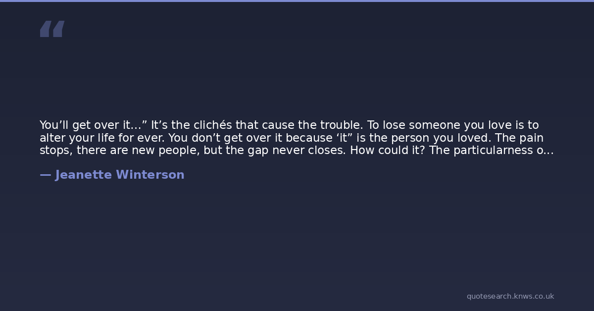 You’ll get over it…” It’s the clichés that cause the trouble. To lose someone you love is to alter your life for ever. You don’t get over it because ‘it” is the person you loved. The pain stops, there are new people, but the gap never closes. How could it? The particularness of someone who mattered enough to grieve over is not made anodyne by death. This hole in my heart is in the shape of you and no-one else can fit it. Why would I want them to?